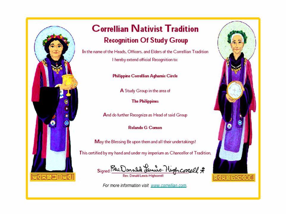 Since then, Apu Adman work tirelessly in sharing what he learned from the Tradition until the time he obtain the formal Charter of the Luntiang Aghama as an official Shrine of the Correllian Tradition in the Philippines as well as his First Degree Initiation in the Tradition.